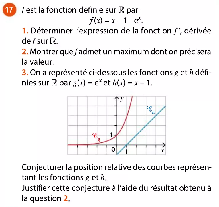 Si f est une fonction, définie et dérivable sur un domaine D_f , telle que :- f'(x) = f(x)