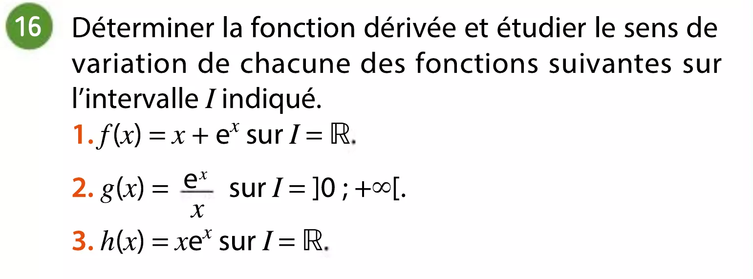 Si f est une fonction, définie et dérivable sur un domaine D_f , telle que :- f'(x) = f(x)