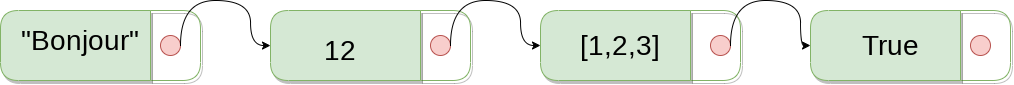 Les éléments sont dits chainés car à chaque élément est associé l'adresse mémoire de l'élément suivant de la liste.